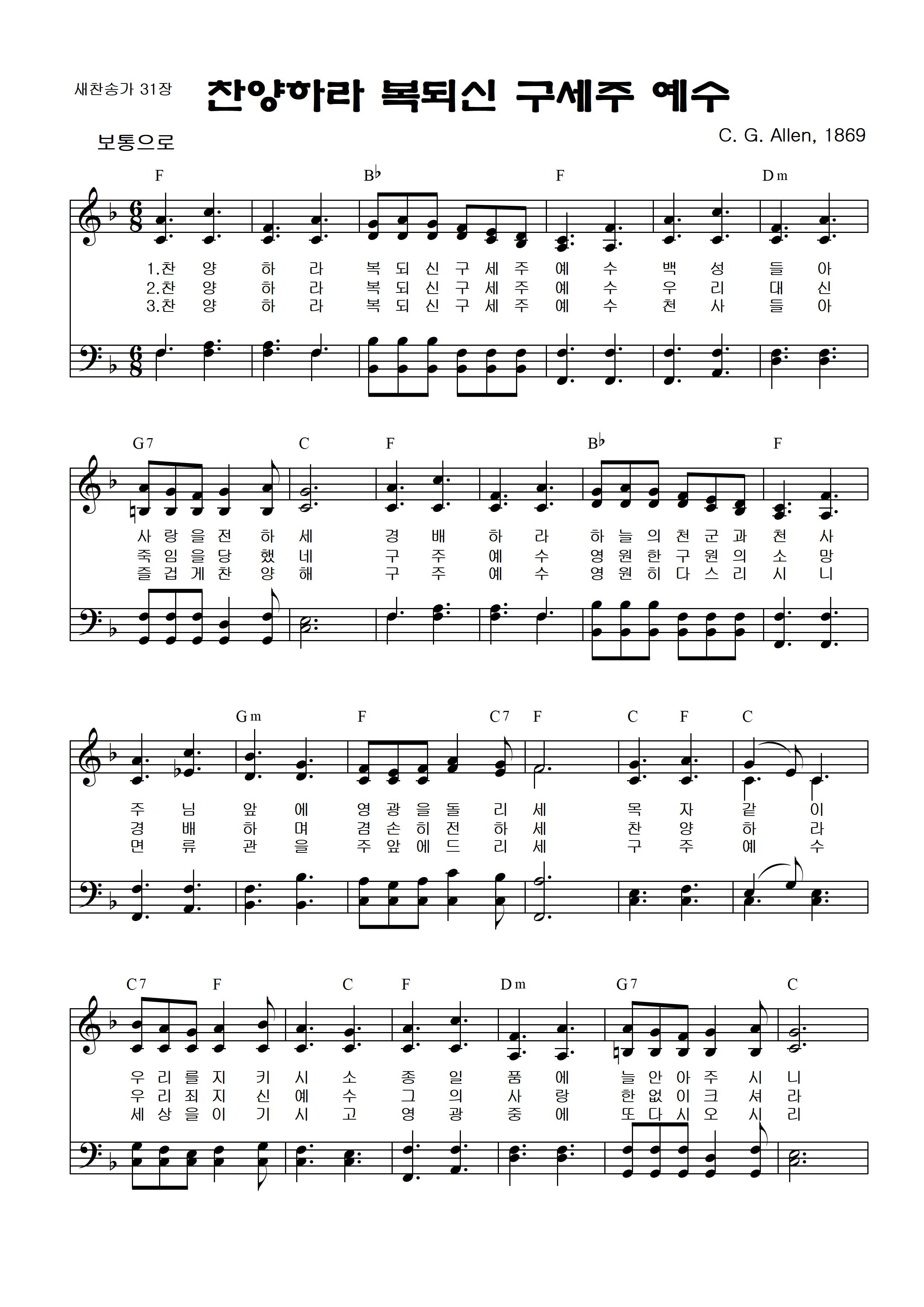 [찬양하라 복되신 예수(제31장)] 찬송가 조옮김 악보(Ab⇒F,G,Bb)