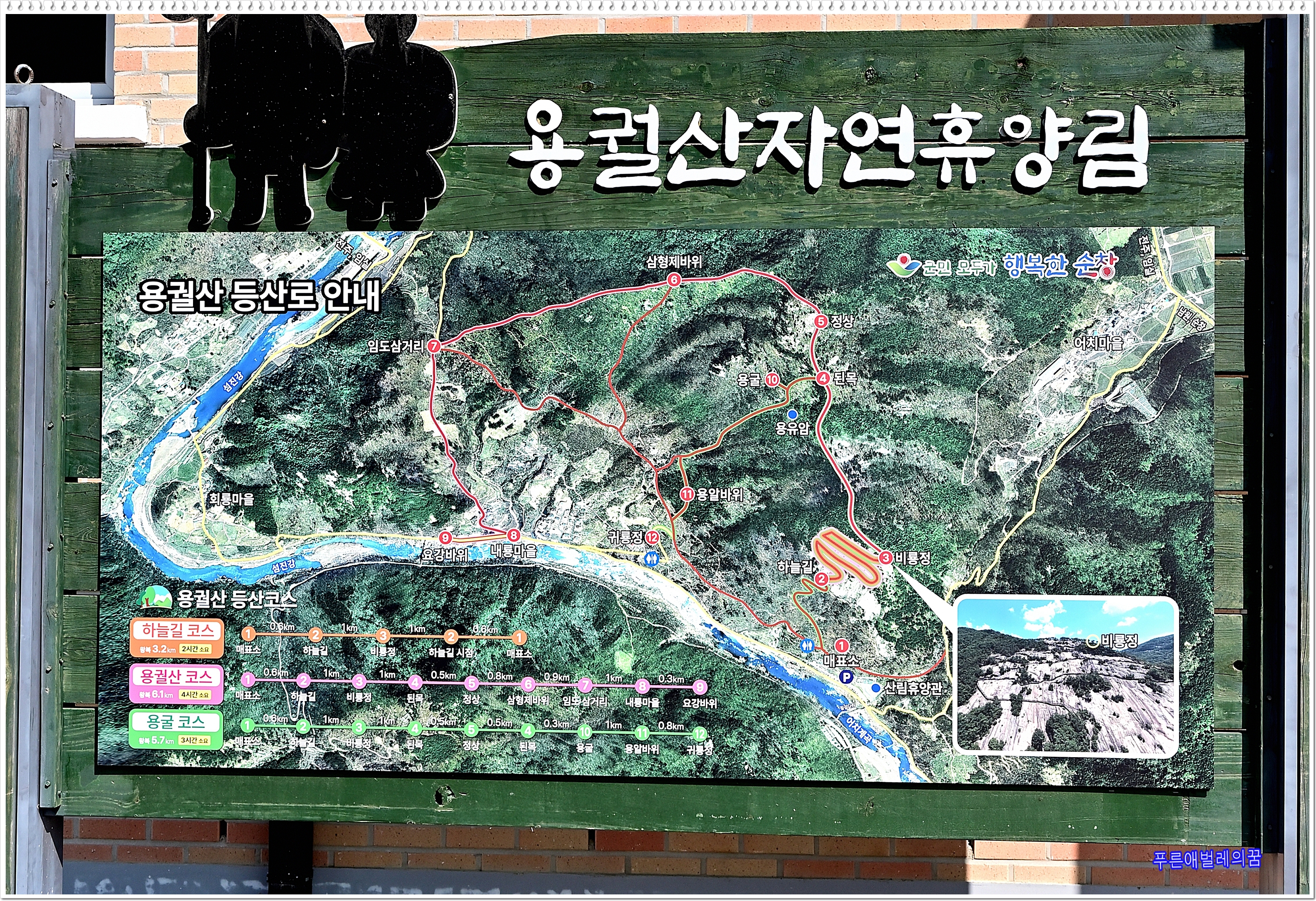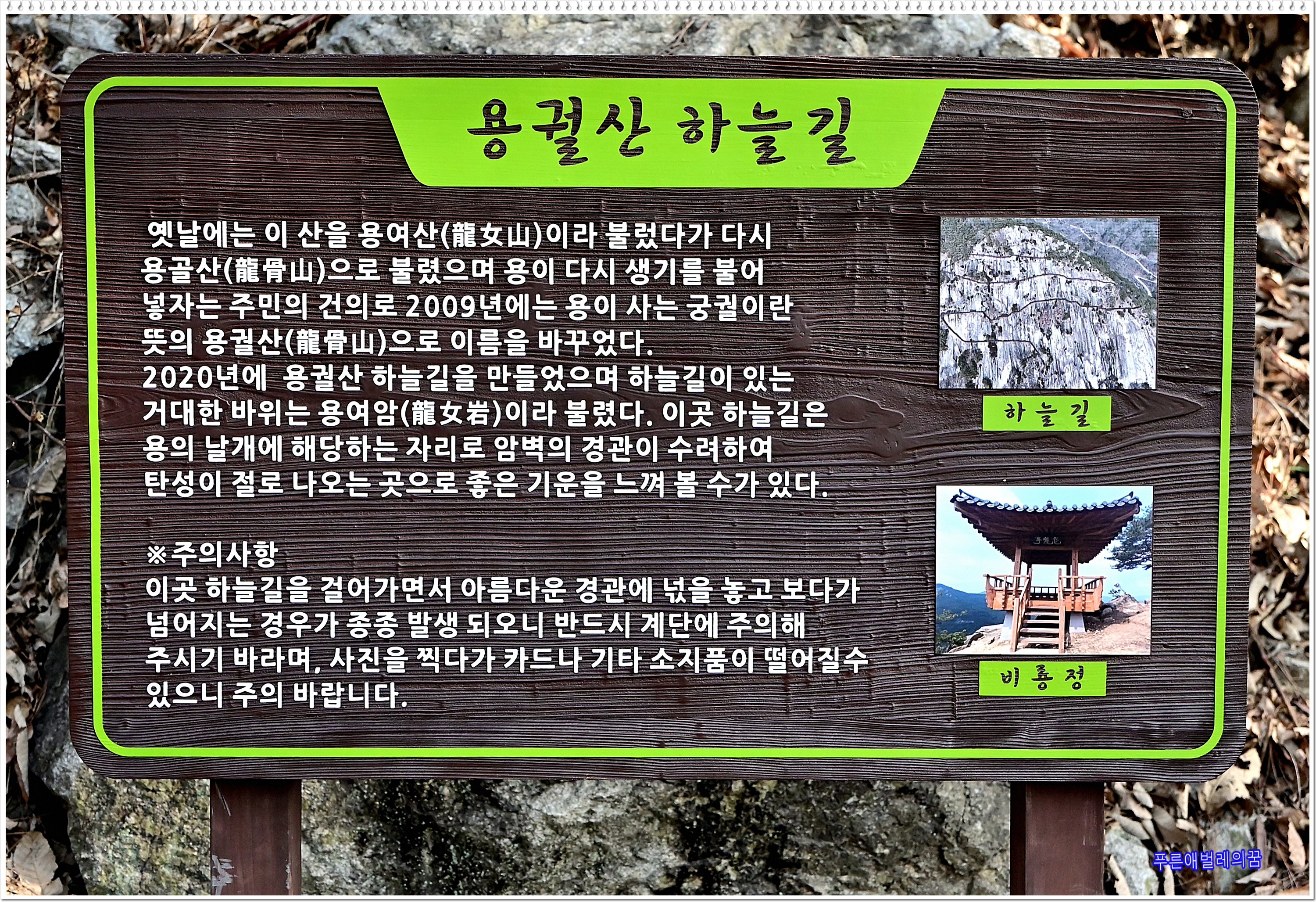 하늘길을 따라 비룡정까지가 목표였는데 내친 김에 정상까지 올라갔다가 내려왔다. 3시간 30분 걸림.